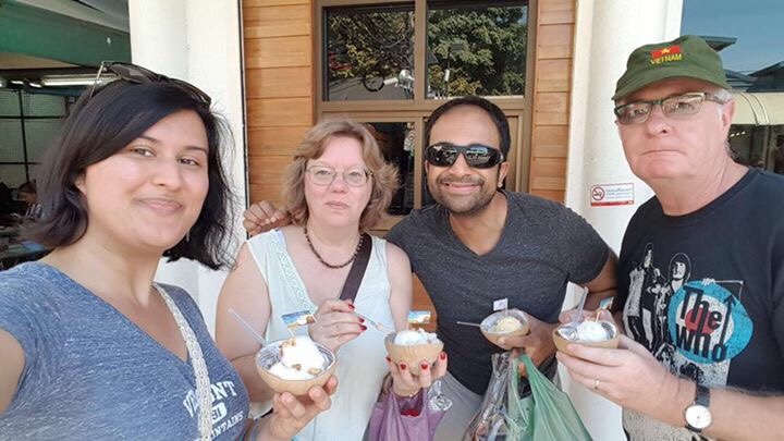 And treated ourselves to delicious coconut ice cream which they served with interesting toppings such as red beans, pumpkin or sweet corn! We had peanuts on ours. All served in a coconut shell so no waste!