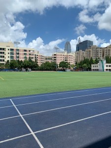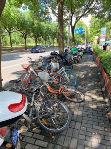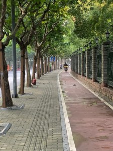 You can see here the red section for bikes and the ridges section for walkers. After the typhoon when the streets were littered with fallen branches and debris the sweepers worked extra hard and it was all cleared by the next morning! And they do sweeping by hand.