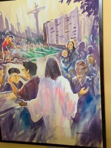 We traversed the spiraling skywalk above the traffic fumes which gave a different view of the buildings.