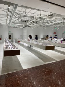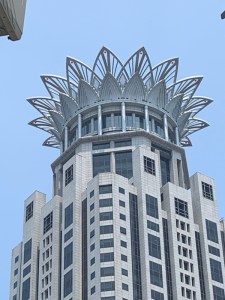 All in all we walked for 8 miles only dipping into the ground floor of the buildings for a drink or some relief from the heat and humidity. In one tower we saw some shops and were impressed by the benches in the opticians. We thought it was an optical illusion, but, they really do float!
