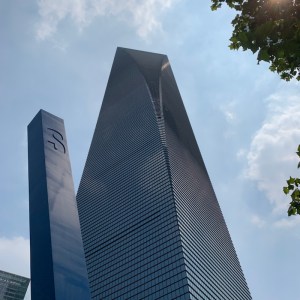 Behind me is the Shanghai world financial centre, or the bottle opener as it is fondly known.