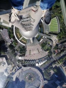 Built in the 1990s as a telecommunications mast (6th tallest in the world) the tower is also host to a series of tourist attractions. We skipped the Segway & Alice in wonderland experiences and headed straight for the Galleria or viewing platform on the second of the pink balls. There is a ‘space cabin’ experience in the tiny sphere near the mast but I’m leaving that to a visitor to take Kevin that far up.