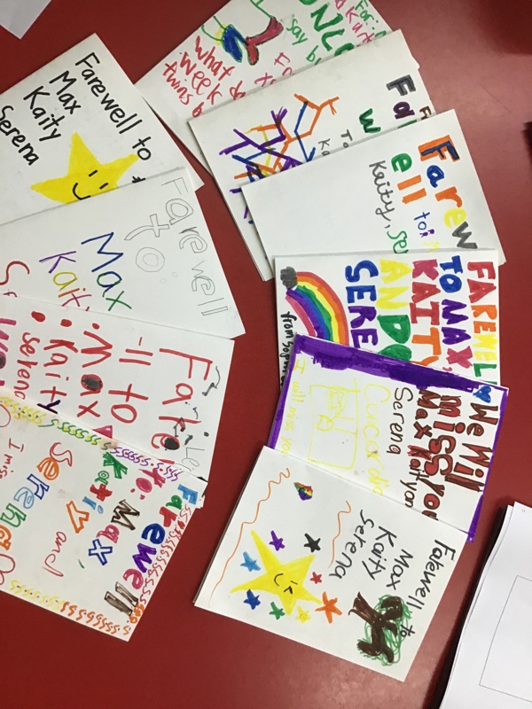 We made good-bye cards, thank you posters and the children had time to be creative. The whole class went off twice each day, once to their Mandarin lesson and once to either Art, Music or PE which gave me a breather and chance to set up anything I needed to or to disappear down to the library to catch up on a bit of that work which still needed my attention!!! My two library assistants were brilliant at running not only our library but also the Middle and High School space as well as books in quarantine. I dashed in to put together the bags of books requested by parents each day and met with designers as we also plan a summer library refurbishment…
