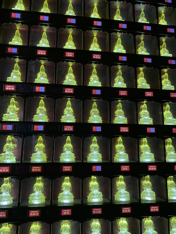 Around the walls were banks of niches filled with glowing statues. At first I thought that they were Buddhas (we have seen so many and they looked the right shape) but on closer inspection they were actually Confucius (we think)