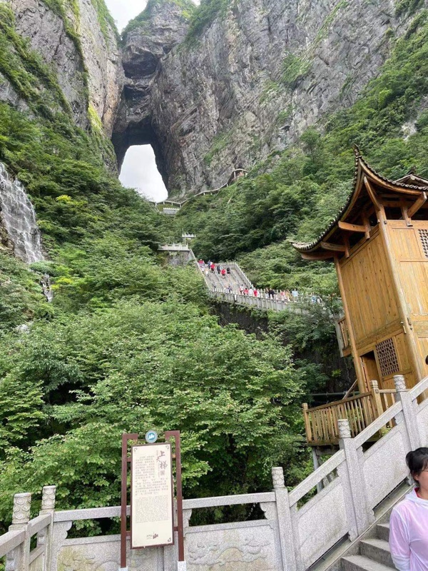 Tianmen means ‘Heaven’s Gate’ Mountain. The name comes from the feature hole near the top. There is also a myth that an ancient general hid stolen treasure in the mountain because it was so inaccessible.