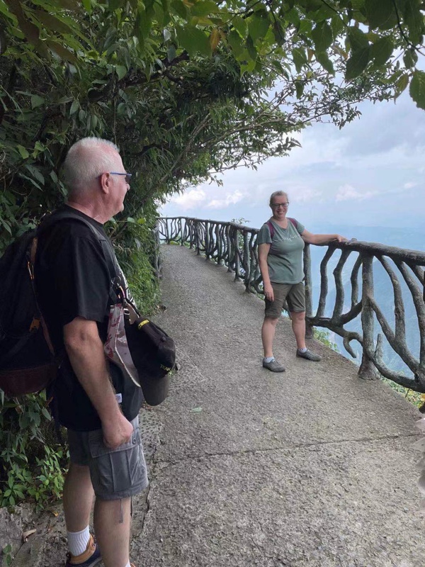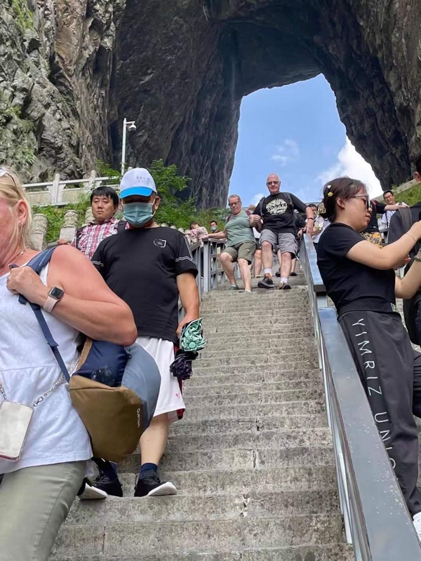 This mountain is high. Higher than the previous scarily high mountains that we have been up. It is over 1500 meters high (4980 feet) which for any UK readers is higher than Ben Nevis. But unlike any British mountain which has a wide base and gentle inclines, this again was mostly sheer cliff faces rising majestically towards the clouds. It is the highest point in the whole of the Hunan province.
