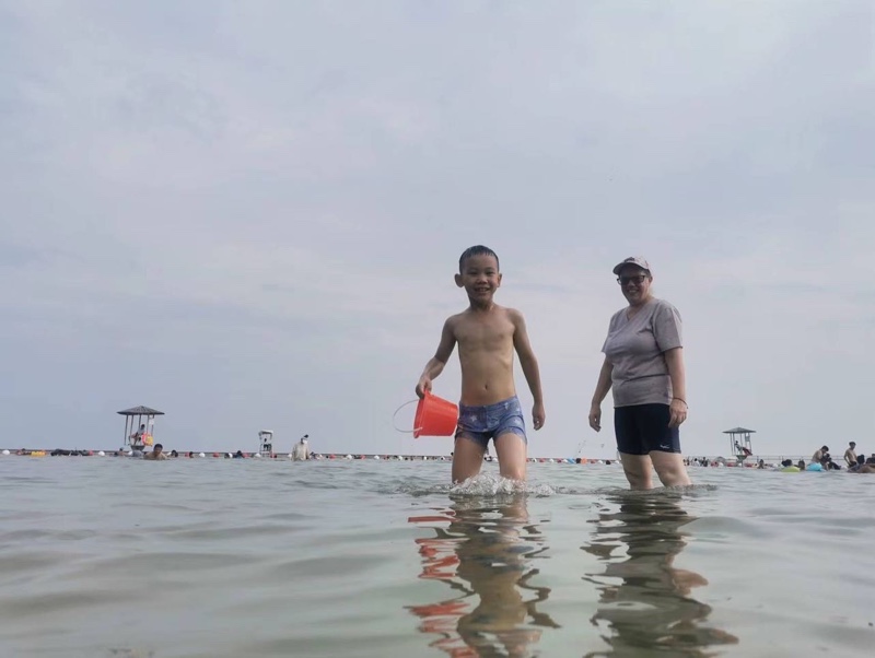 We went to the Shanghai beach (which isn’t anything like beaches back home as it was all highly regulated where you could and couldn’t go). But the water was very warm. We invented a game of bucket frisbee!