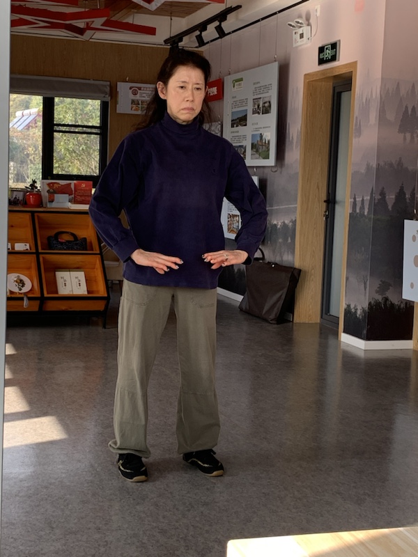 We practiced some different stances for our daily meditation. This one is called Fu Yang where the hands rest below the navel over the ‘Qi Ocean’. This position helps the energy to circulate.