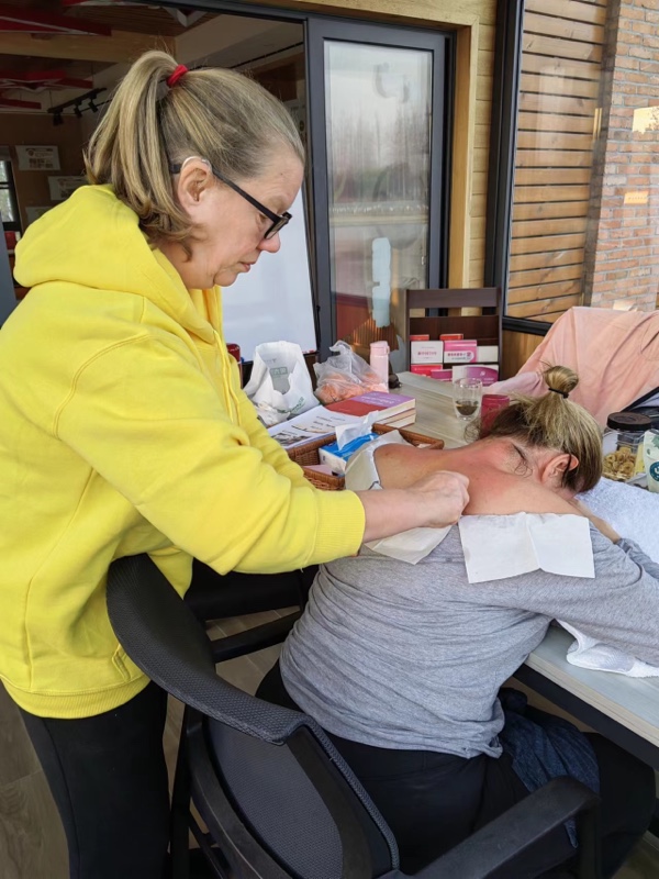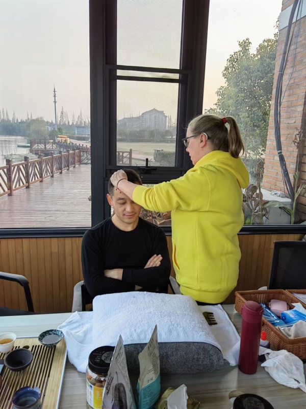 So far I have learned beauty treatments for the face and therapy for the head, neck and shoulders. Being an online course I need volunteers to practice on at home. Under Shifu’s guidance I was able to improve my skills in these areas on the other delegates.