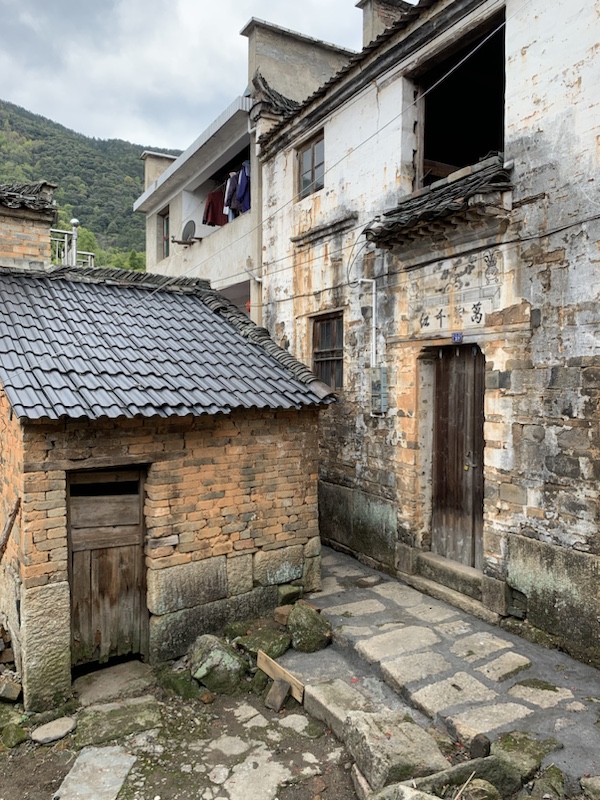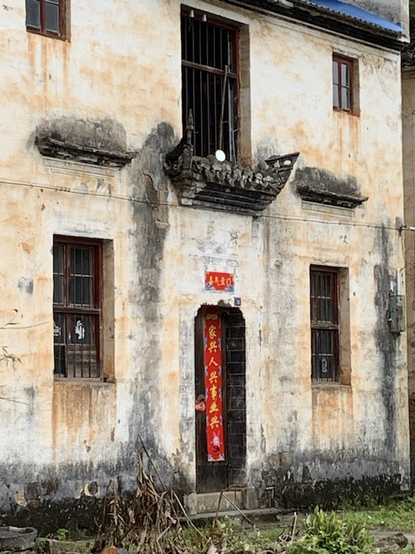 Interestingly, these old country houses (still occupied) have mirrors above the door to reflect bad spirits away. look carefully for the small shiny circle. Superstition is alive and well in rural communist China.