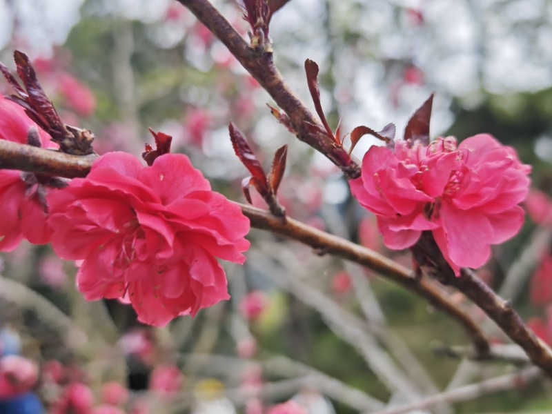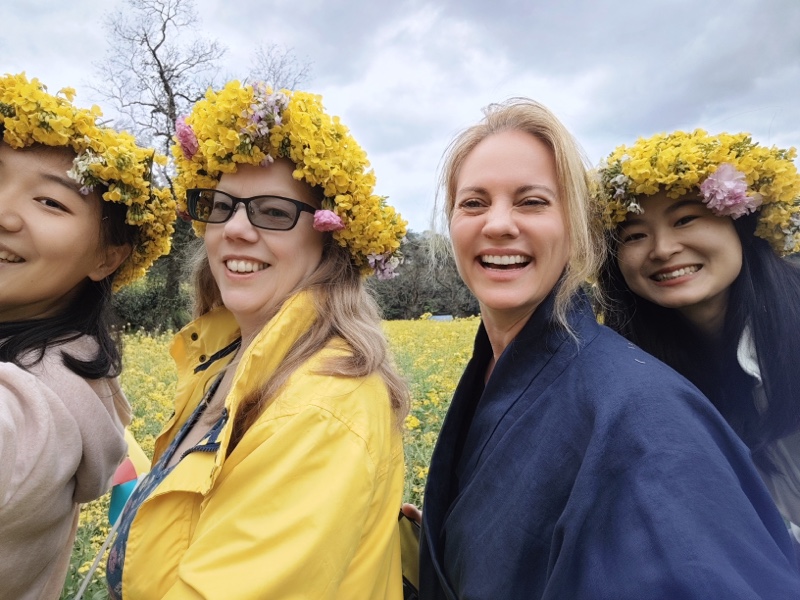 We have fun riding a miniature steam train and strolling through the fields of yellow surrounded by spring blossoms.