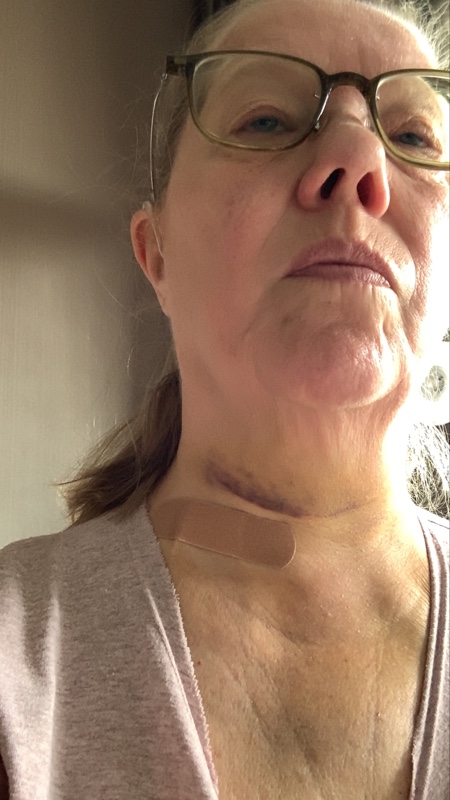 Dr Tong took one look at me and said, ‘woah!’ In all his career he has never seen a bleed like this after a thyroid biopsy. I have also done some research and what happened to me is apparently extremely rare. All medical procedures carry a risk and I was just unfortunate on this occasion.