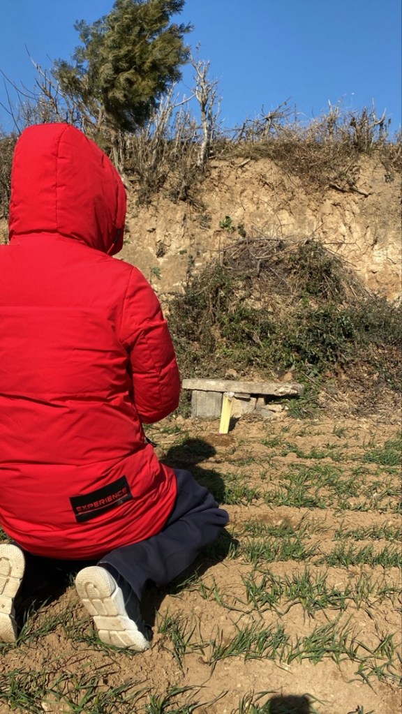 After the ceremonies at the Temple we went into a further field to the site of the tomb of shifu’s father.