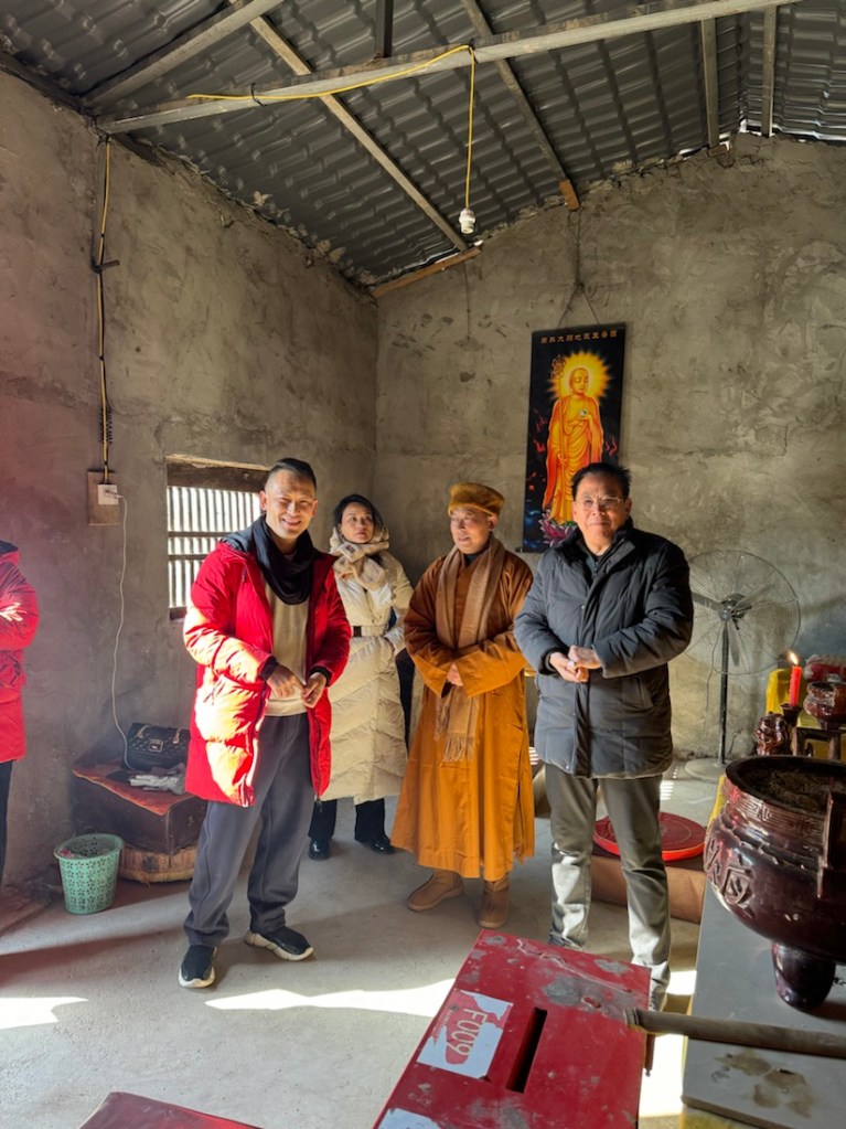 The temple is in the middle of fields and a long way from anywhere (China is a BIG country). It is only partially built and funding for the building projects stopped during COVID. Normally 5 monks live here but as it was winter 3 were traveling to raise funds and only two remained to greet us.