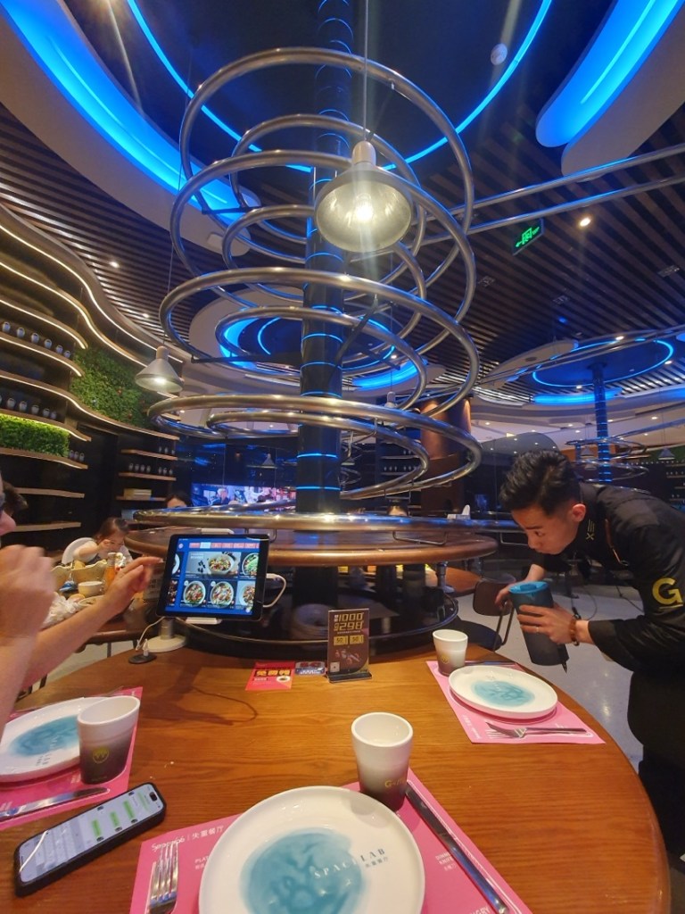 Inigo has been enjoying Chinese food. Today we went to the Spacelab (basically a burger joint) but the food is delivered by robotic tracks to your table which is pretty cool to watch!