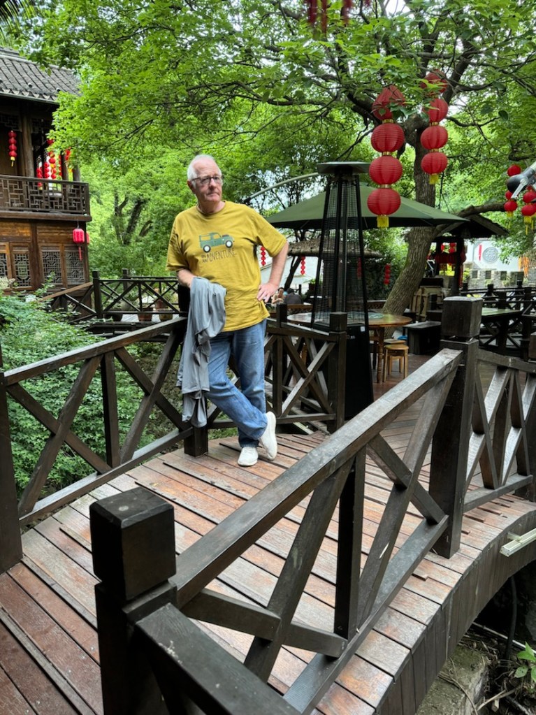 Our evening meal was in a restaurant where we had not only a private room but also a private bridge to get to it! Our very first private bridge! We were impressed.