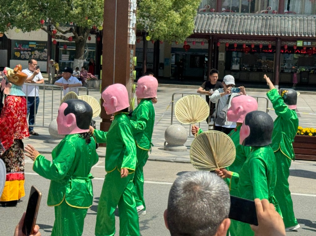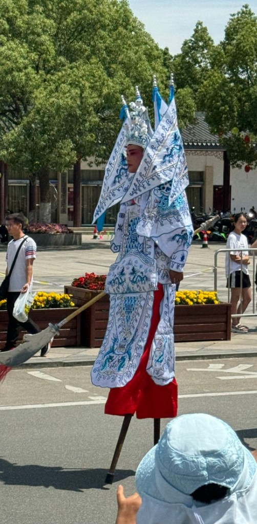 On Sunday we went to a park where we chanced upon a dragon boat festival parade. We don’t see this sort of thing in the metropolis of Shanghai. It was a very hot day but the costumes were spectacular in the sunshine.