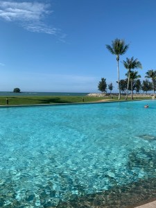 alcohol is extra. We could have had a drinks package like pretty much everyone else here and worn a wristband but at $80 per person per day we felt we’d need to be serious alcoholics to get our money’s worth… besides I am working.